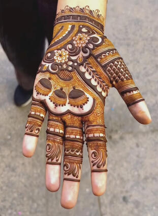"Absolutely loved the design! π The mehndi artist was super patient and skilled. The color turned out so rich! Will definitely book again."