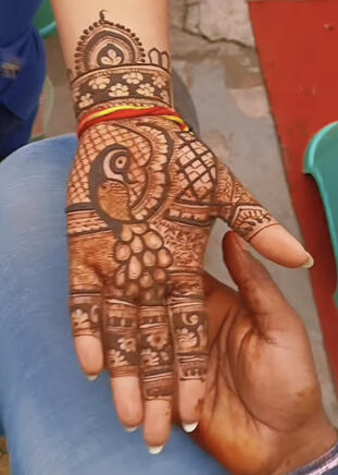 "Beautiful mehndi! π The artist was talented, but I wish the drying time was a bit faster. Overall, a great experience!"