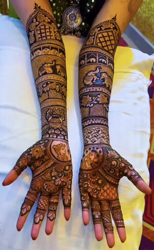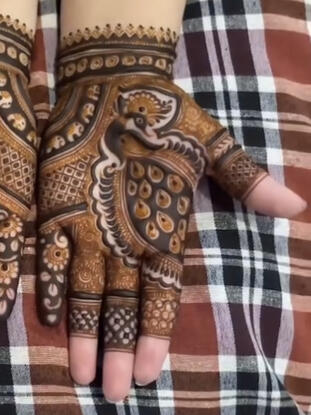 "Absolutely loved the design! π The mehndi artist was super patient and skilled. The color turned out so rich! Will definitely book again."